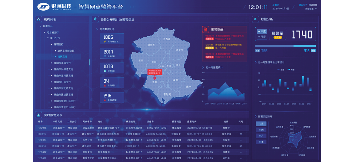 智慧用電部分包含:報(bào)警、用電管理、設(shè)備檔案、系統(tǒng)管理、統(tǒng)計(jì)和大屏展示幾個(gè)部分。管理者可在系統(tǒng)內(nèi)對(duì)接入設(shè)備進(jìn)行分組管控,對(duì)電閘進(jìn)行一鍵管控。同時(shí)可查看每個(gè)設(shè)備產(chǎn)生的詳細(xì)數(shù)據(jù),處理報(bào)警和設(shè)備維修等問(wèn)題。系統(tǒng)對(duì)設(shè)備運(yùn)行中產(chǎn)生的數(shù)據(jù)進(jìn)行了系統(tǒng)的分析,能清楚的看到設(shè)備的運(yùn)行狀況、電路運(yùn)行狀況以及節(jié)約用電情況。